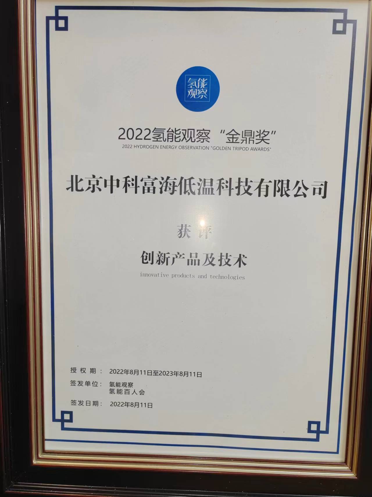 2020中國氫能與燃料電池汽車産業高峰論壇年度氫能産品獎