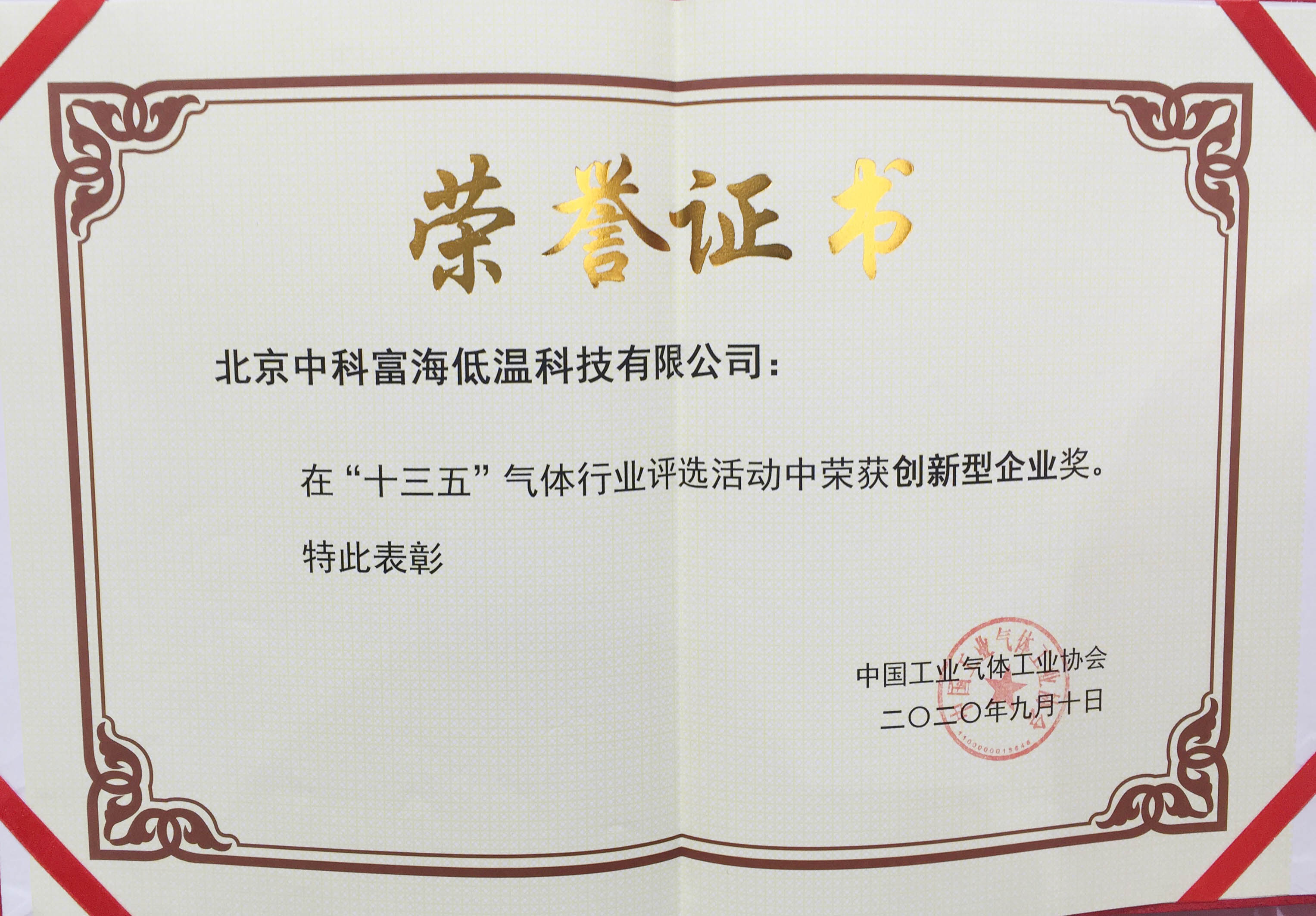 “十三五”氣體行業評選活動創新型企業獎