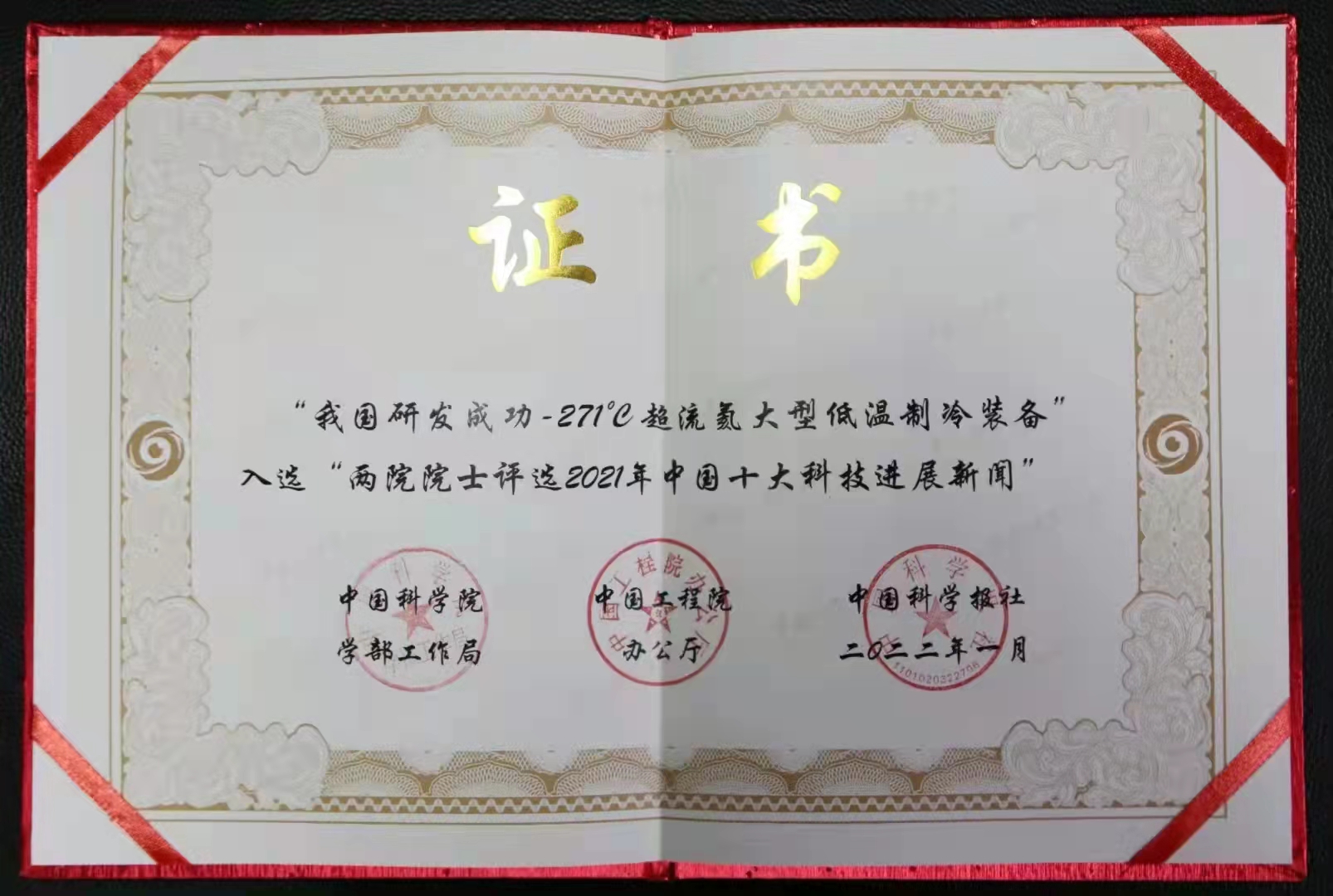 我國研發成功-271℃超流氦大型低溫制冷裝備入選兩院院士評選2021年中國十大科技進展新聞